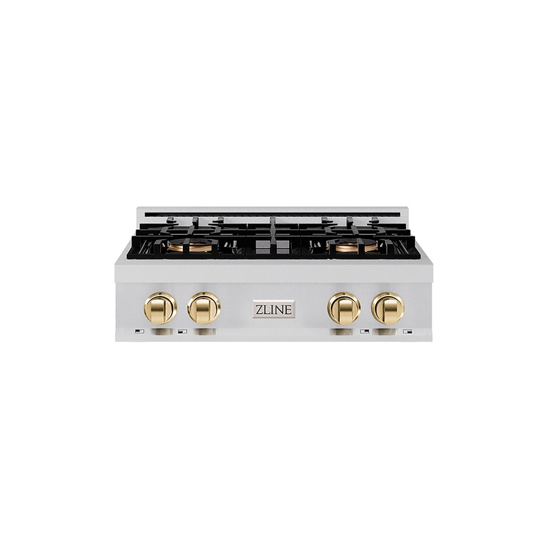 Luxury isnt meant to be left desiredits meant to be attainable. The ZLINE Autograph Edition 30 in. Classic Gas Rangetop with 4 Burner DuoPro Cooktop in Stainless Steel and Polished Gold Accents (PCRTZ-30-G) features a high-powered gas cooktop with 4 hand-c