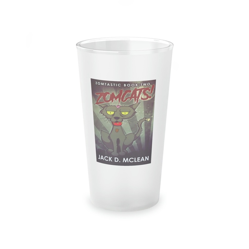 This frosted matte finish pint glass is versatile and dishwasher-safe. The cover art in this pint glass is from Jack D. McLean's book, Zomcats!.