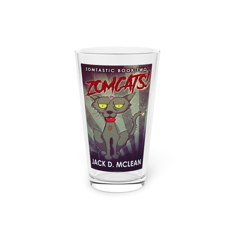 Nothing can replace a pint glass except for another pint glass. These long and transparent glasses are highly versatile, can make for a great housewarming gift, and are bound to be used in any household. The cover art on this pint glass is from Jack D. McLean’s book, Zomcats!.